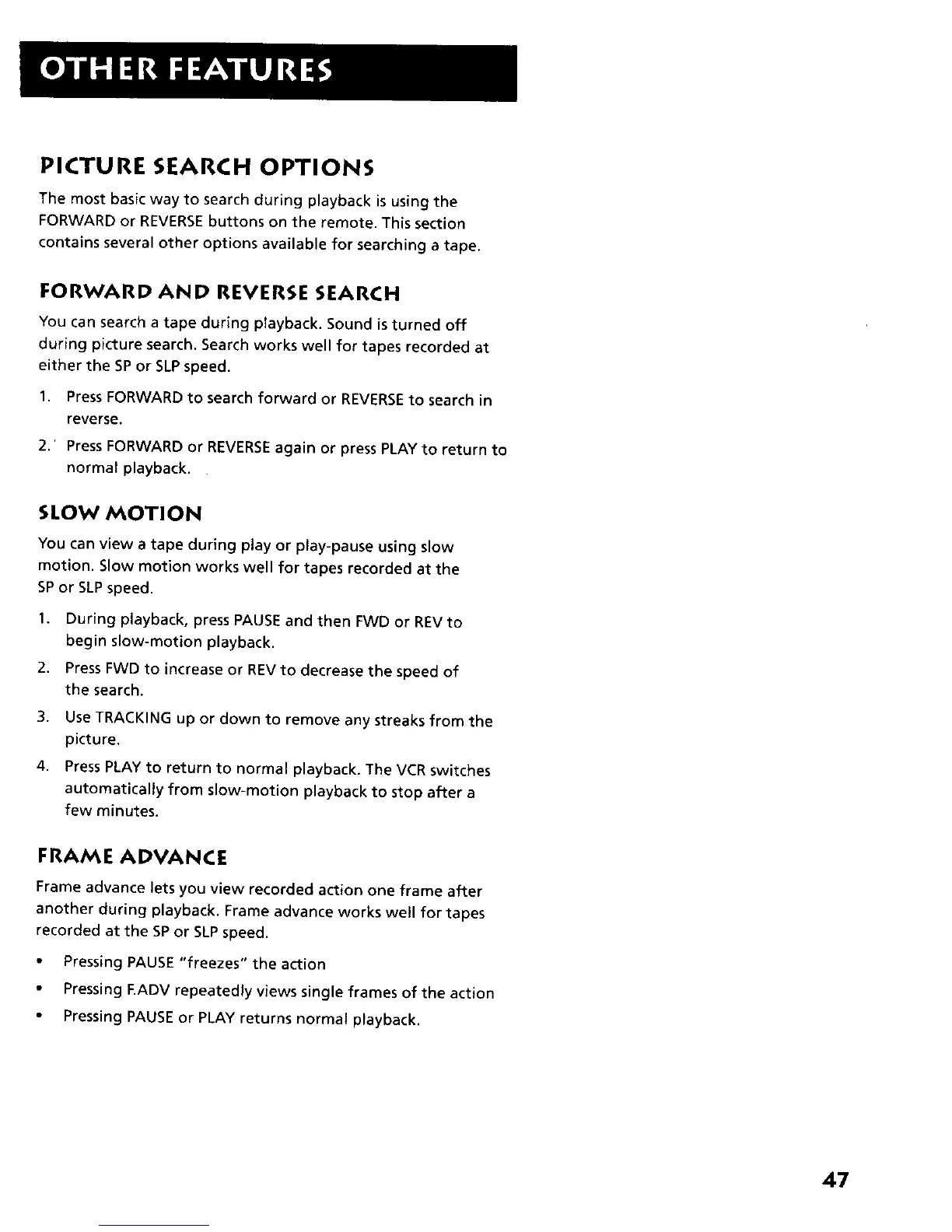 2.' Press FORWARD or REVERSEagain or press PLAY to return to