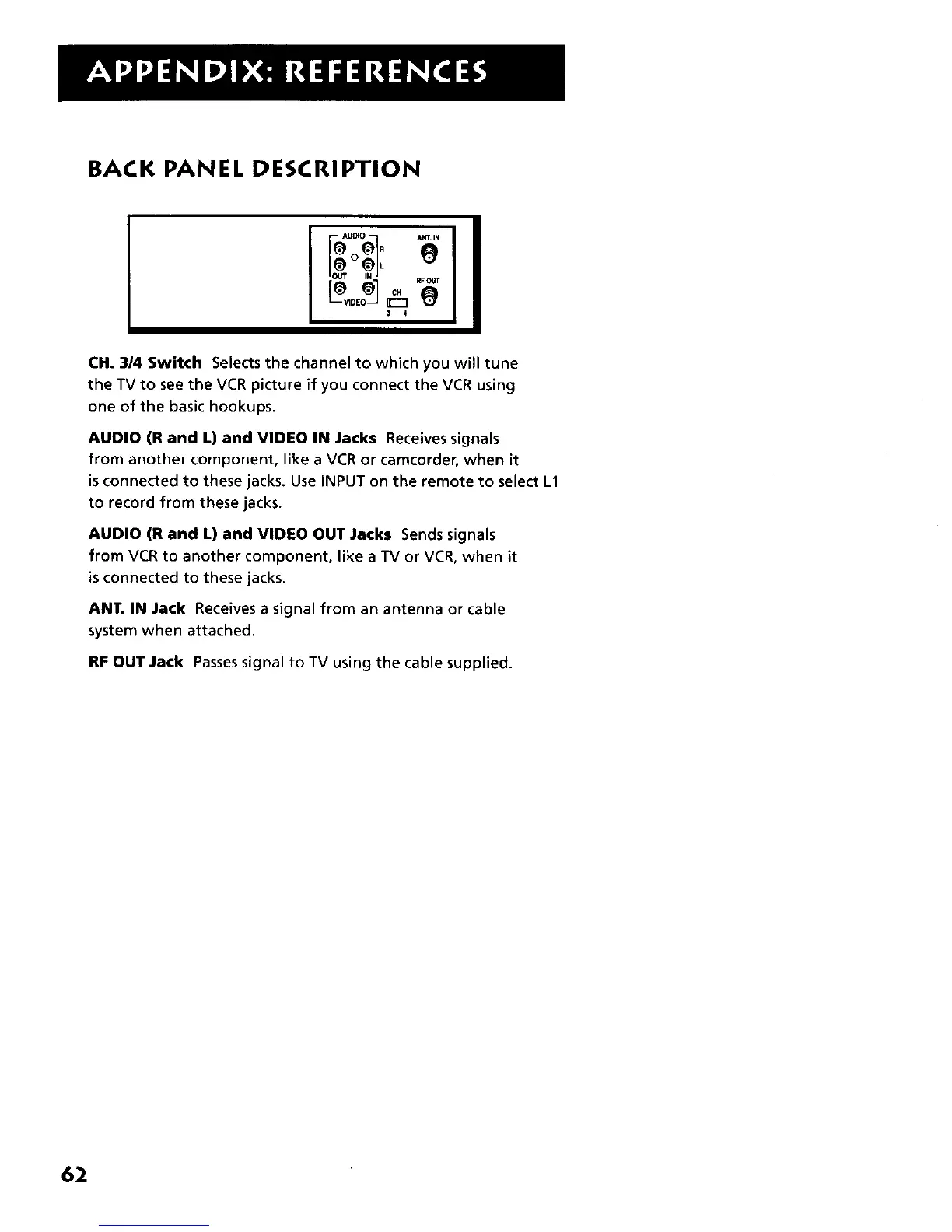 CH. 3/4 Switch Selects the channel to which you will tune