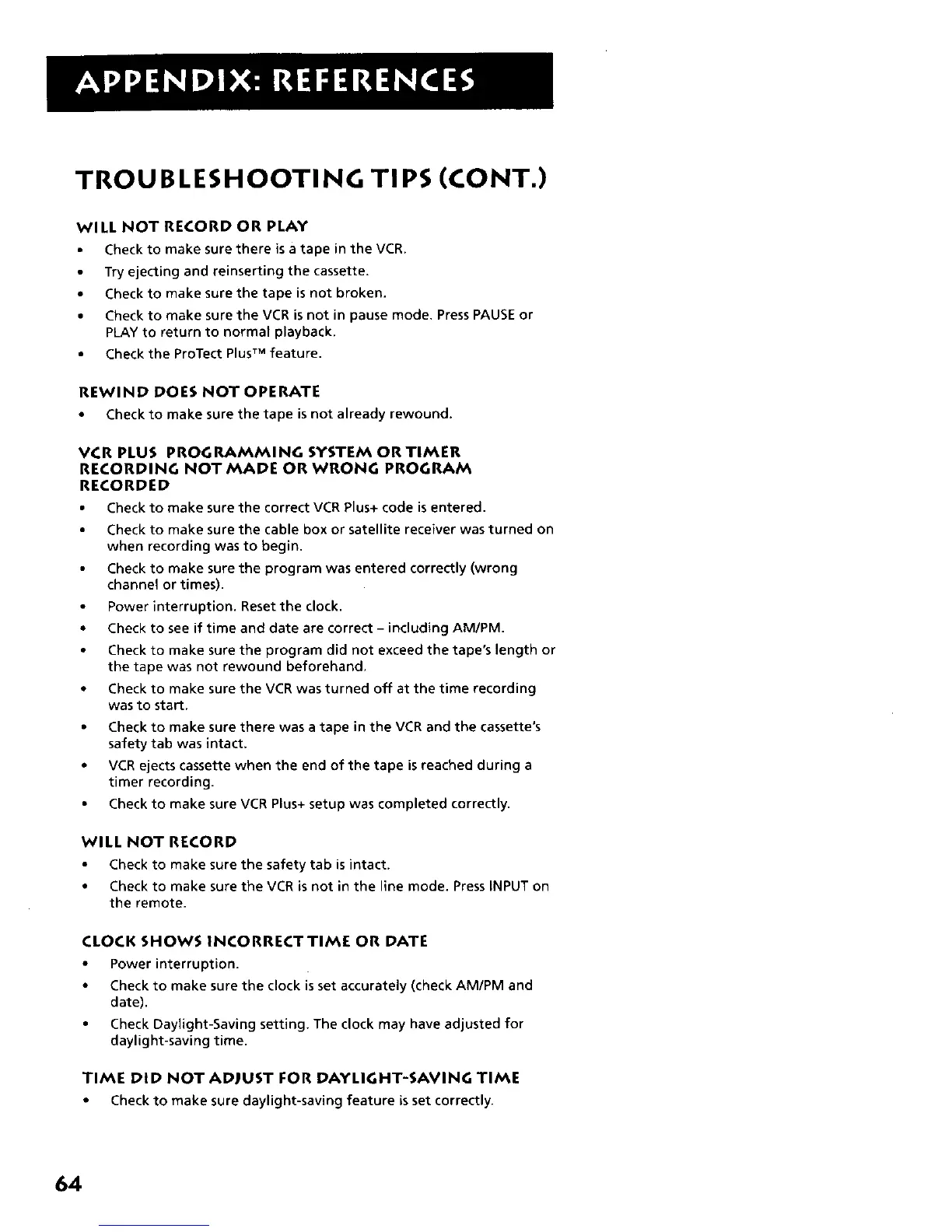 • Check to make sure the VCR was turned off at the time recording