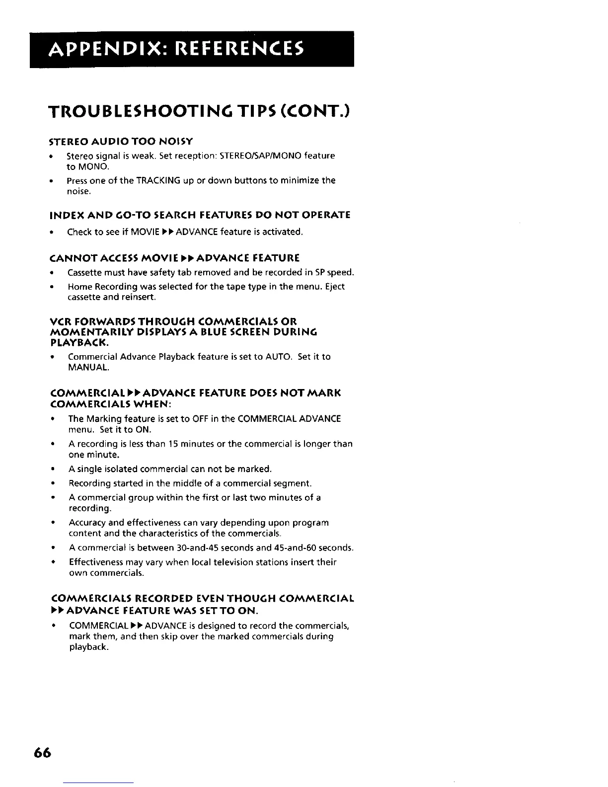 • COMMERCIAL I_, ADVANCE is designed to record the commercials,