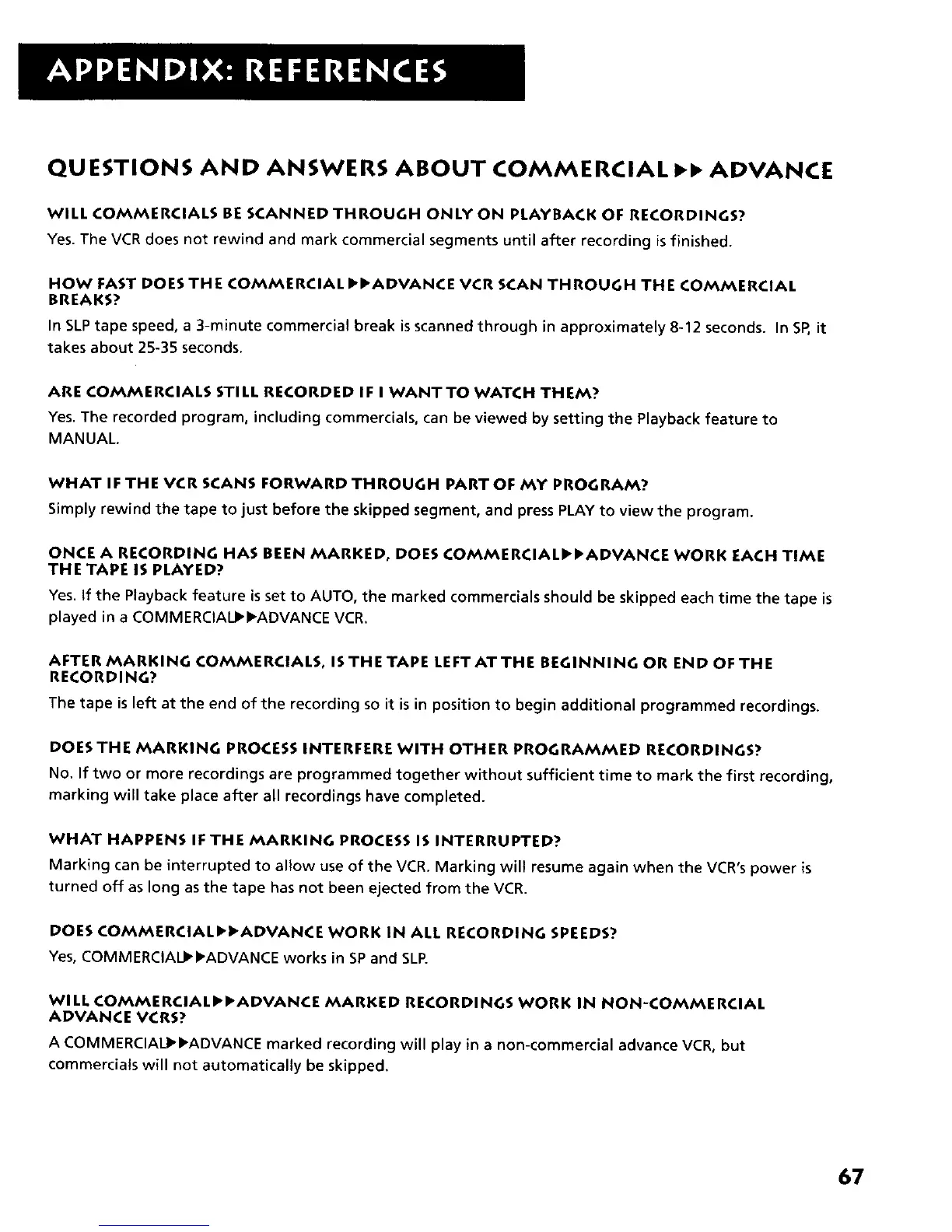 HOW FAST DOES THE COMMERCIAL ,,ADVANCE VCR SCAN THROUGH THE COMMERCIAL