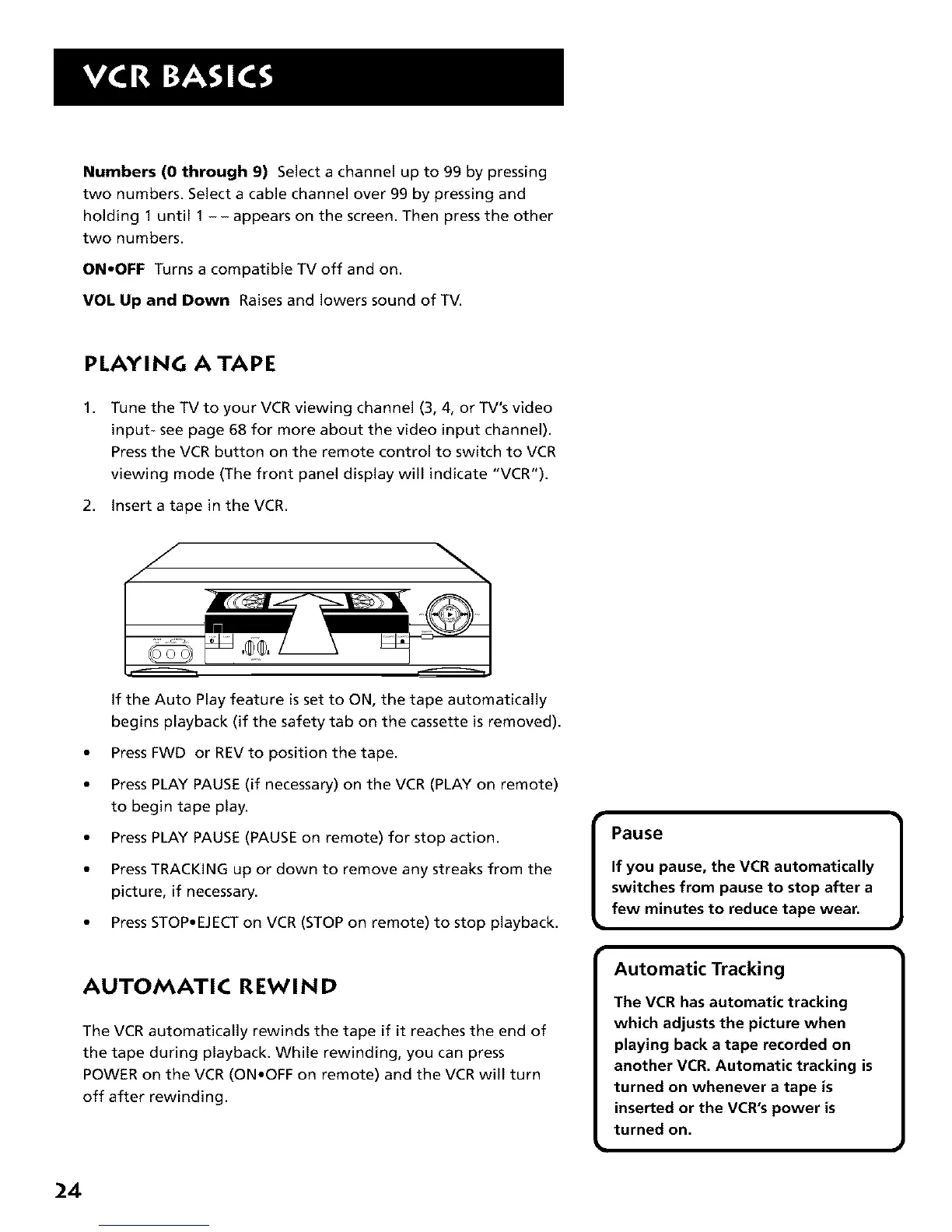 Press PLAY PAUSE (if necessary) on the VCR (PLAY on remote)