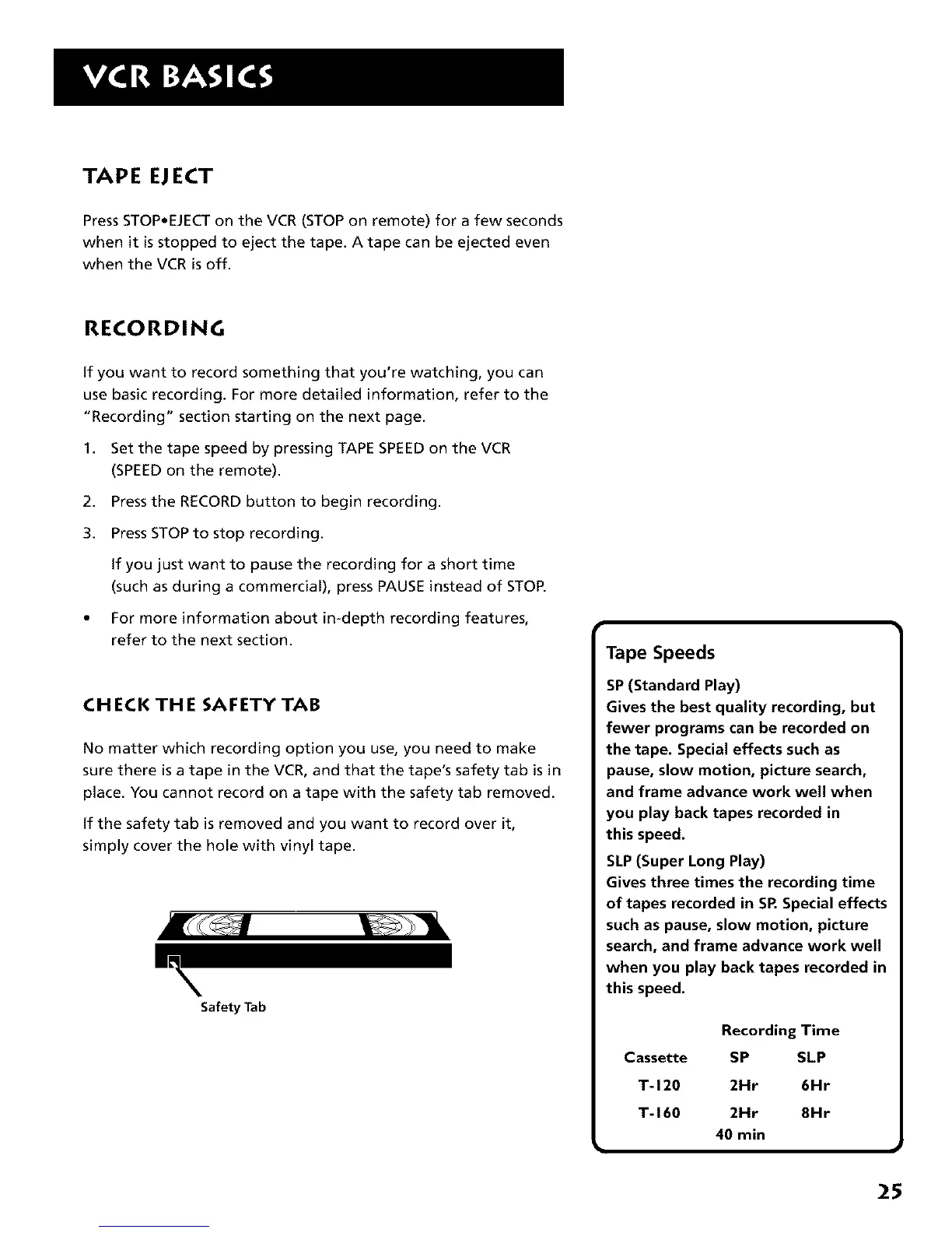 sure there is a tape in the VCR, and that the tape's safety tab is in