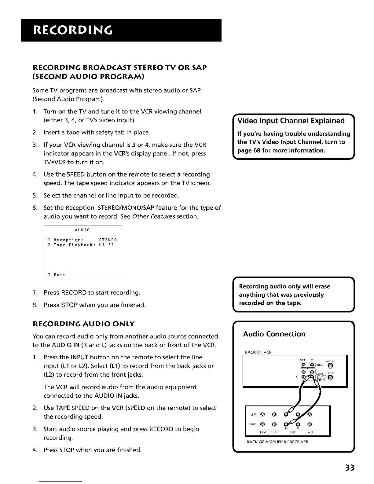 RECORDING BROADCAST STEREO TV OR SAP