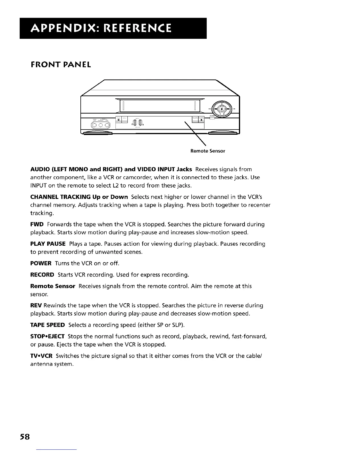 CHANNEL TRACKING Up or Down Selects next higher or lower channel in the VCR's