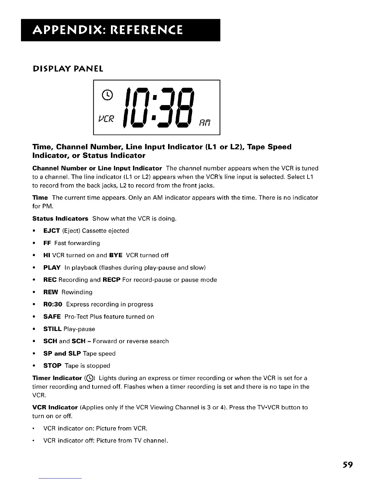 Channel Number or Line Input Indicator The channel number appears when the VCR is tuned