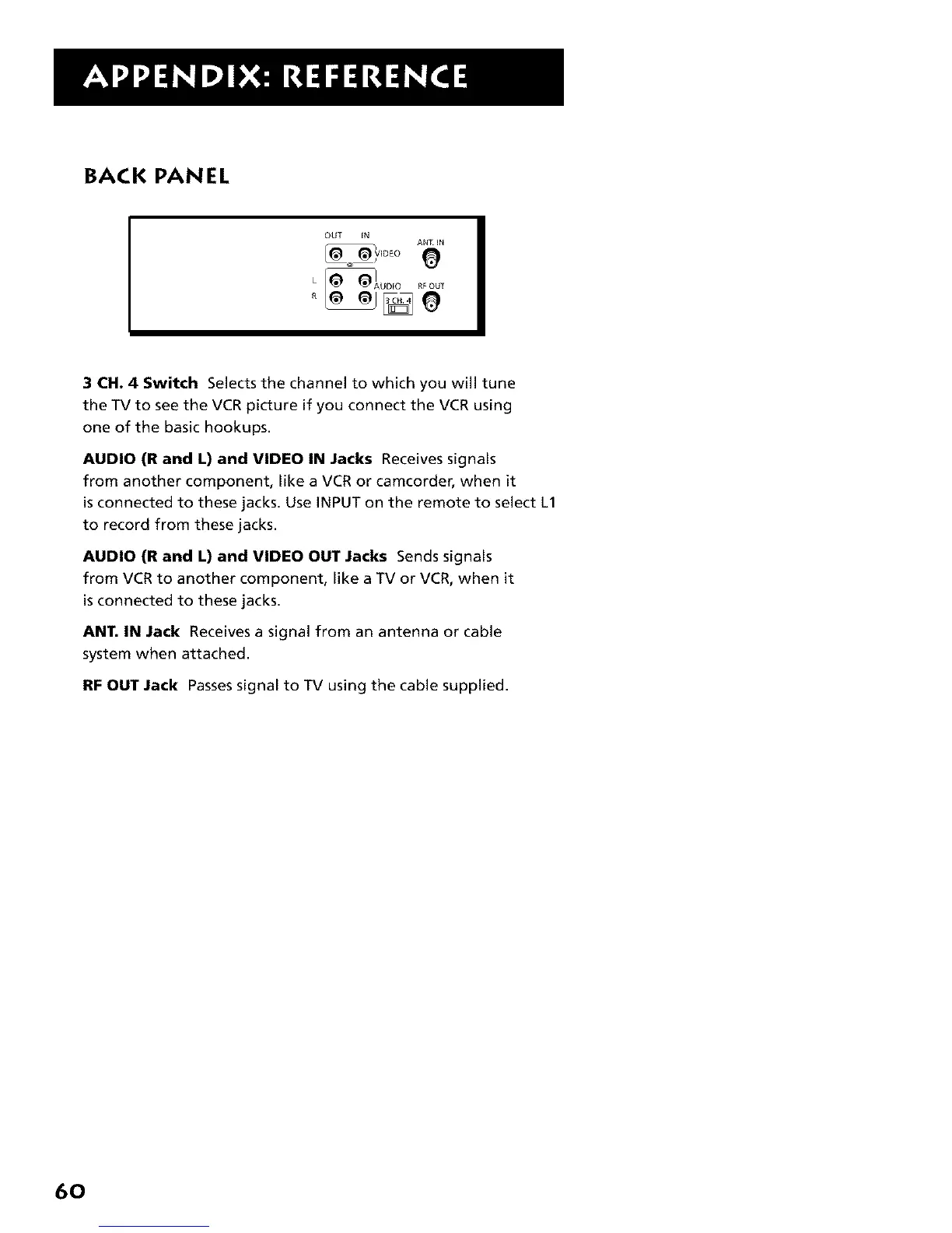 RF OUT Jack Passessignal to TV using the cable supplied.