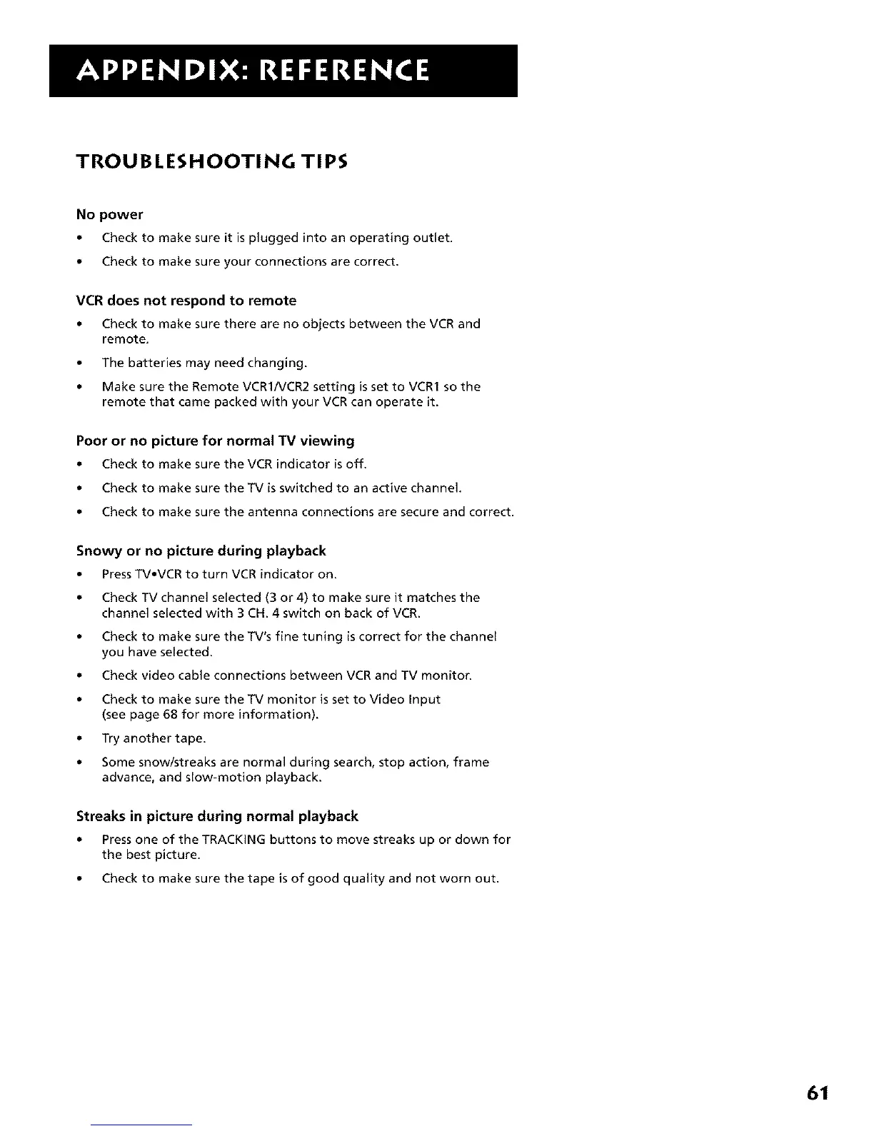 • Check TV channel selected (3 or 4) to make sure it matches the