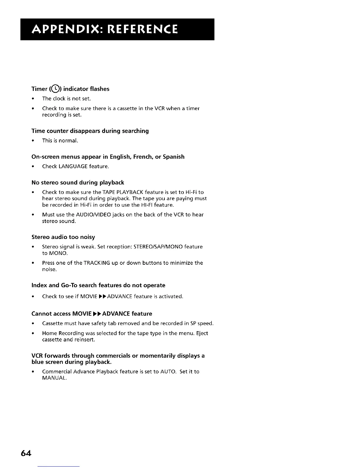 • Check to see if MOVIE b,ADVANCE feature is activated.