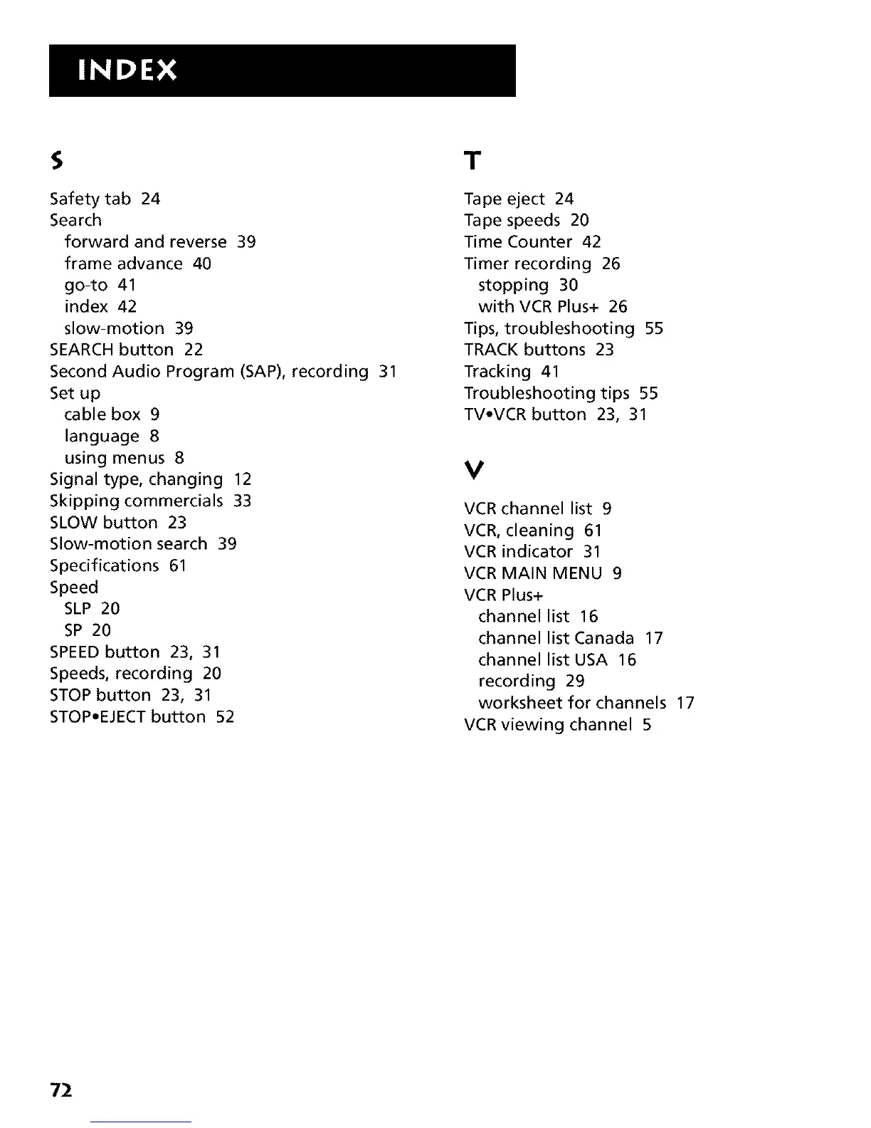 VCR, cleaning 61