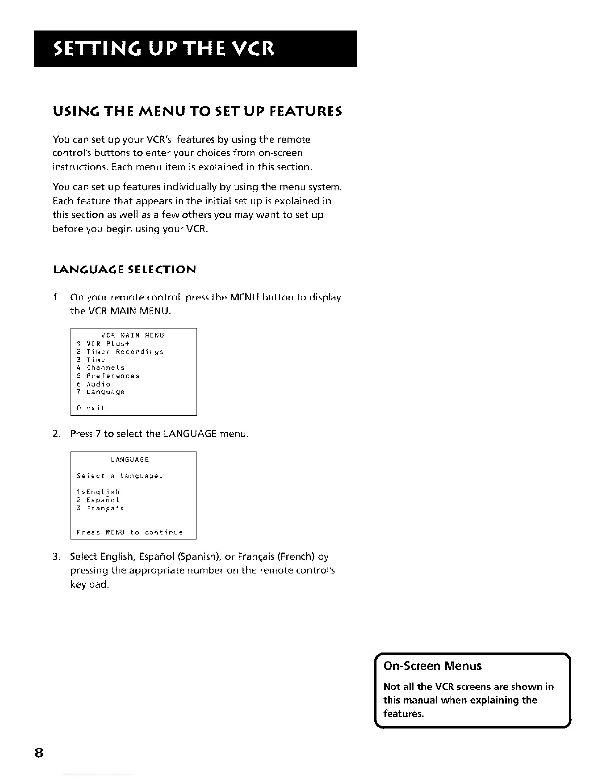 Select English, Espa_ol (Spanish), or Fran(;ais (French) by