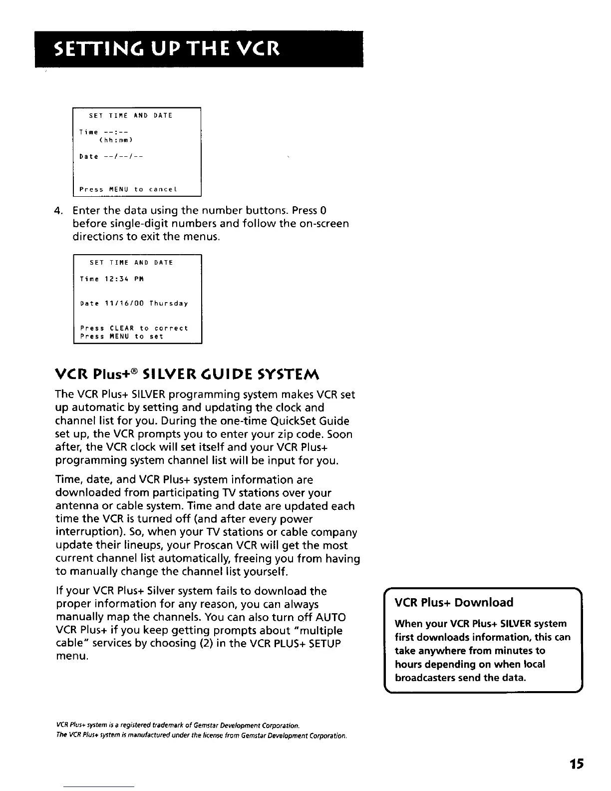 The VCR Plus+ SILVER programming system makes VCR set