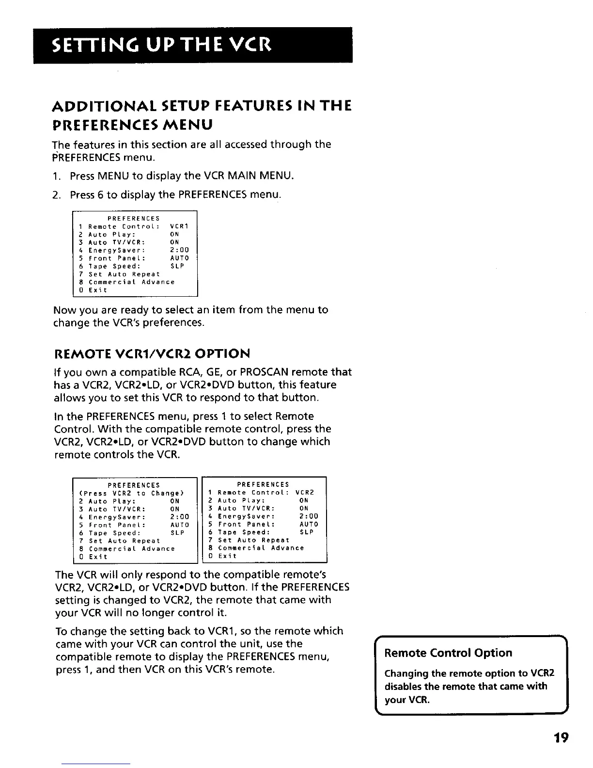 VCR2, VCR2.LD, or VCR2,DVD button. If the PREFERENCES