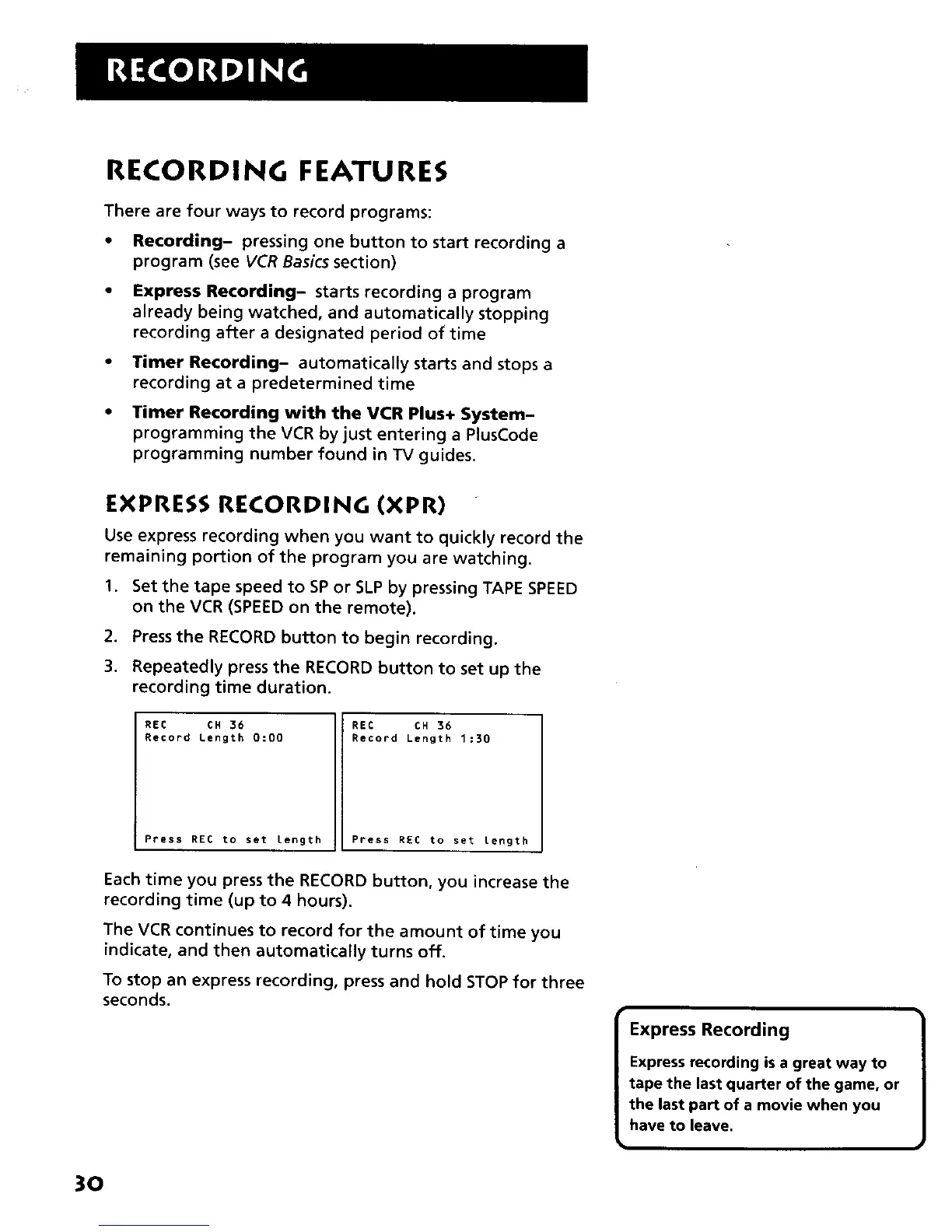 1. Set the tape speed to SP or SLP by pressing TAPE SPEED