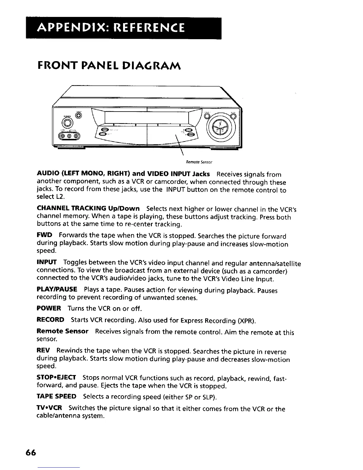 RECORD Starts VCR recording. Also used for Express Recording (XPR).