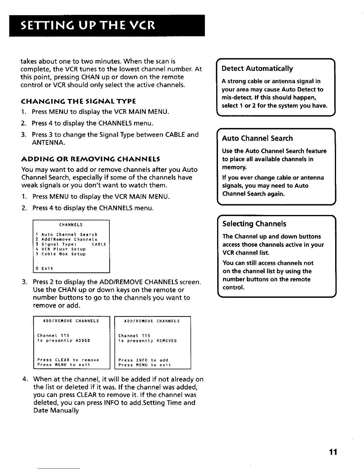 3. Press 2 to display the ADD/REMOVE CHANNELS screen.
