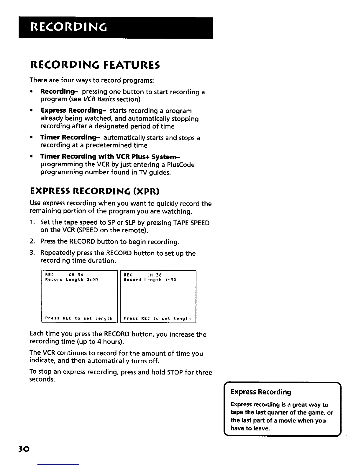 • Express Recording-- starts recording a program