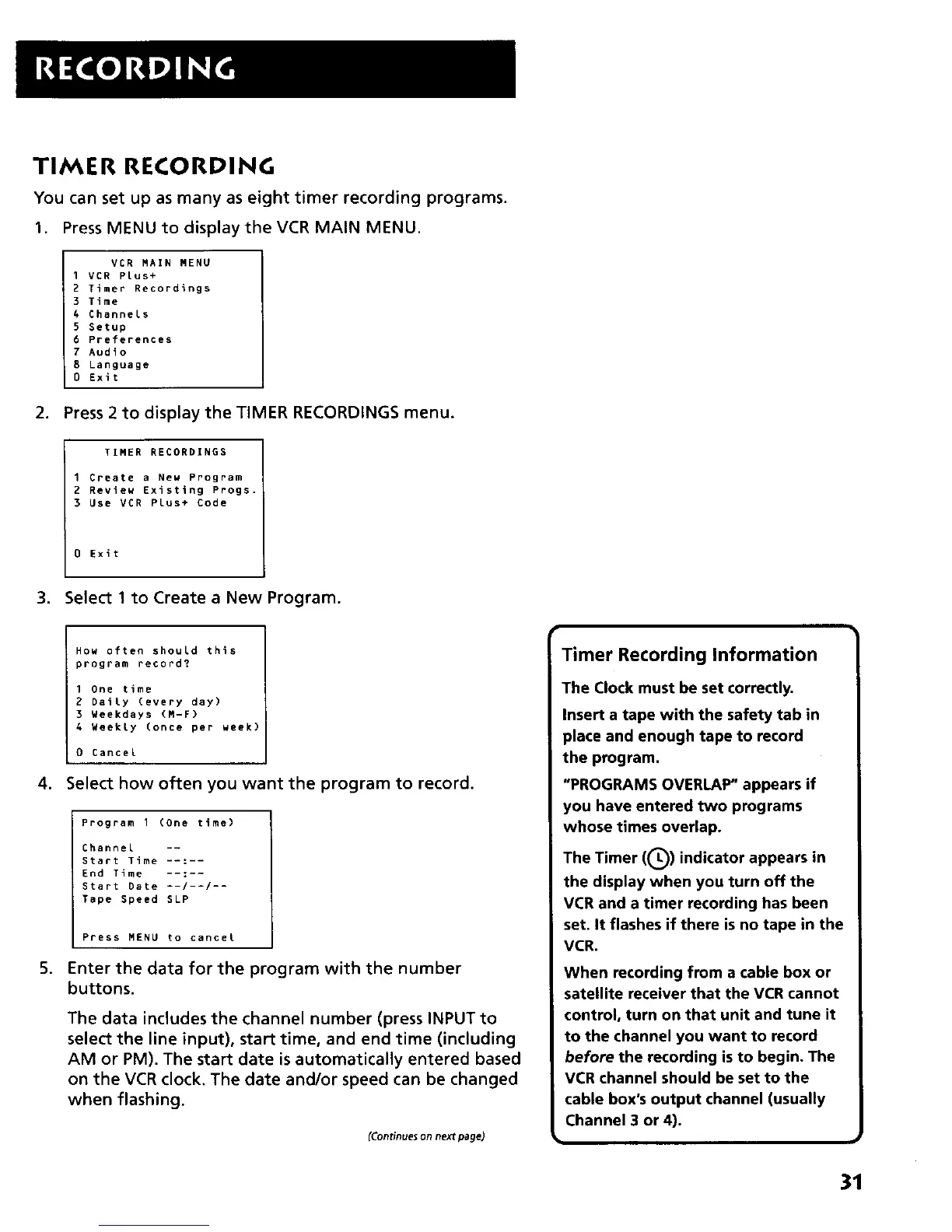 2. Press 2 to display the TIMER RECORDINGS menu.
