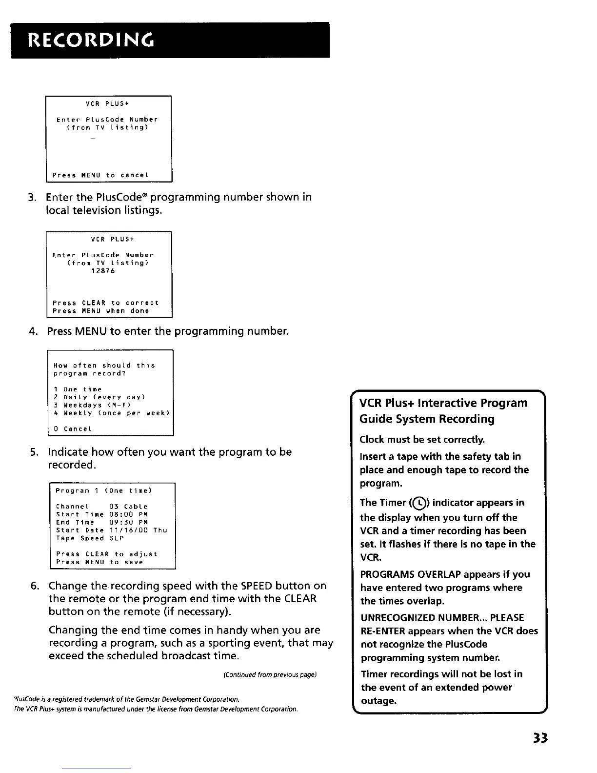The VCRPlus+ system ismanufactured under the license from Gemstar Development Corporation.