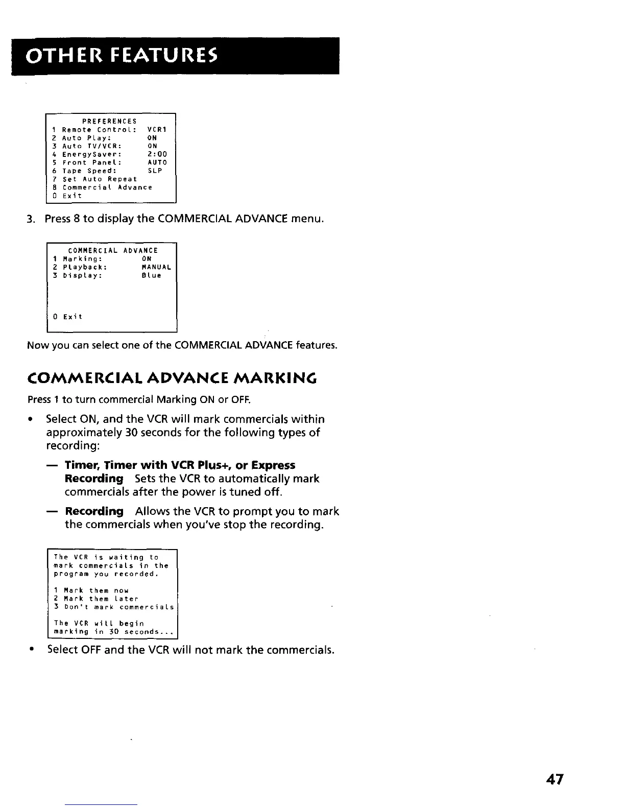 Now you can select one of the COMMERCIAL ADVANCE features.