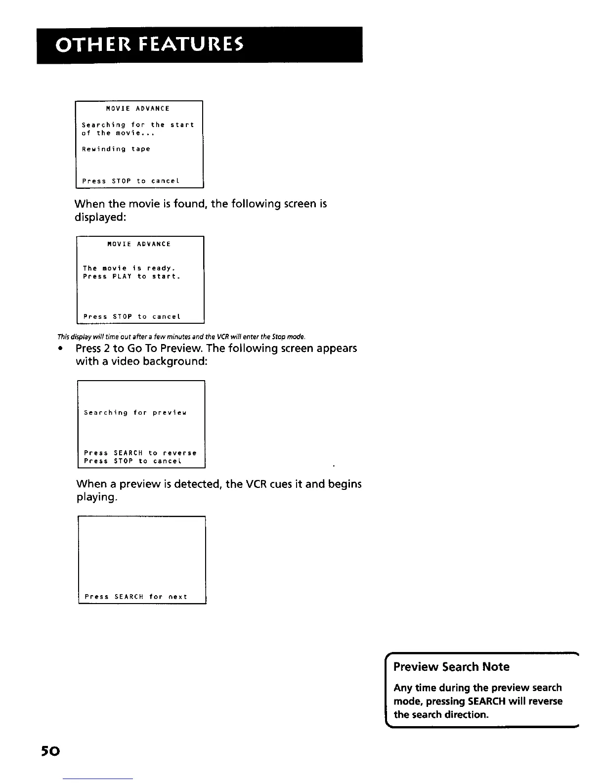 When a preview is detected, the VCR cues it and begins