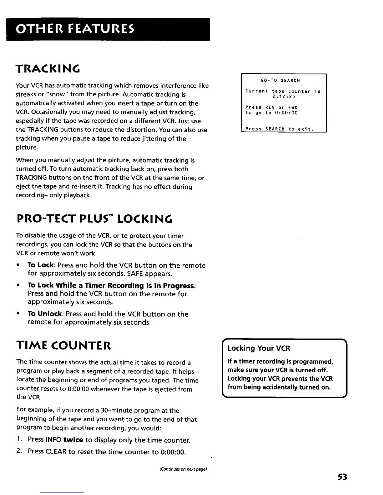 VCR. Occasionally you may need to manually adjust tracking,