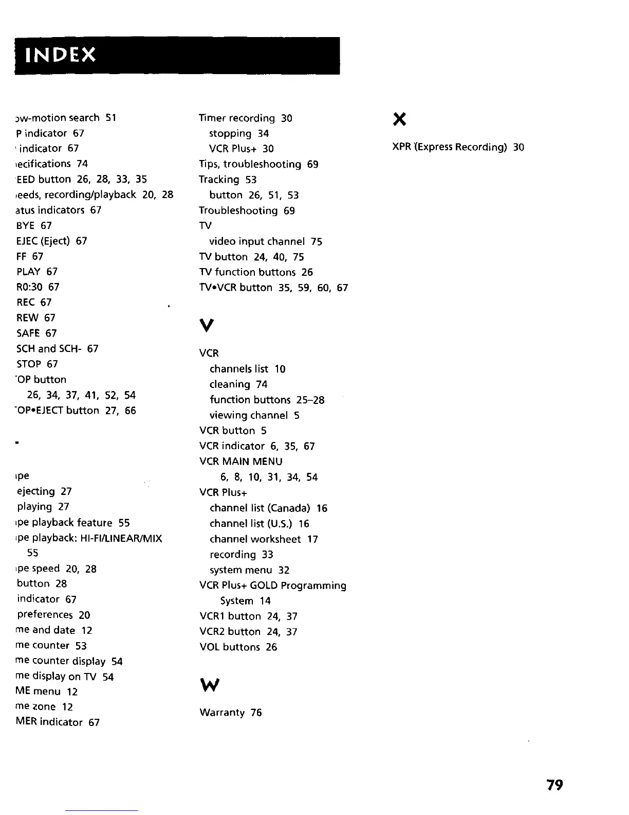 VCR indicator 6, 35, 67