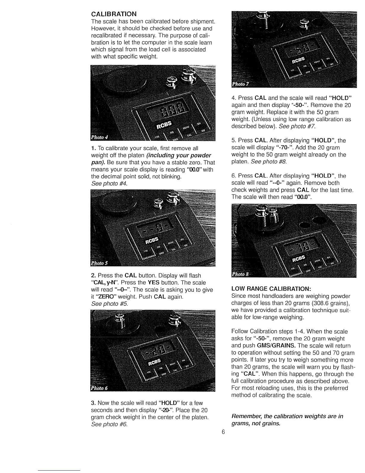 RCBS Powder Pro - CALIBRATION PROCESS; STANDARD CALIBRATION STEPS; LOW RANGE CALIBRATION METHOD