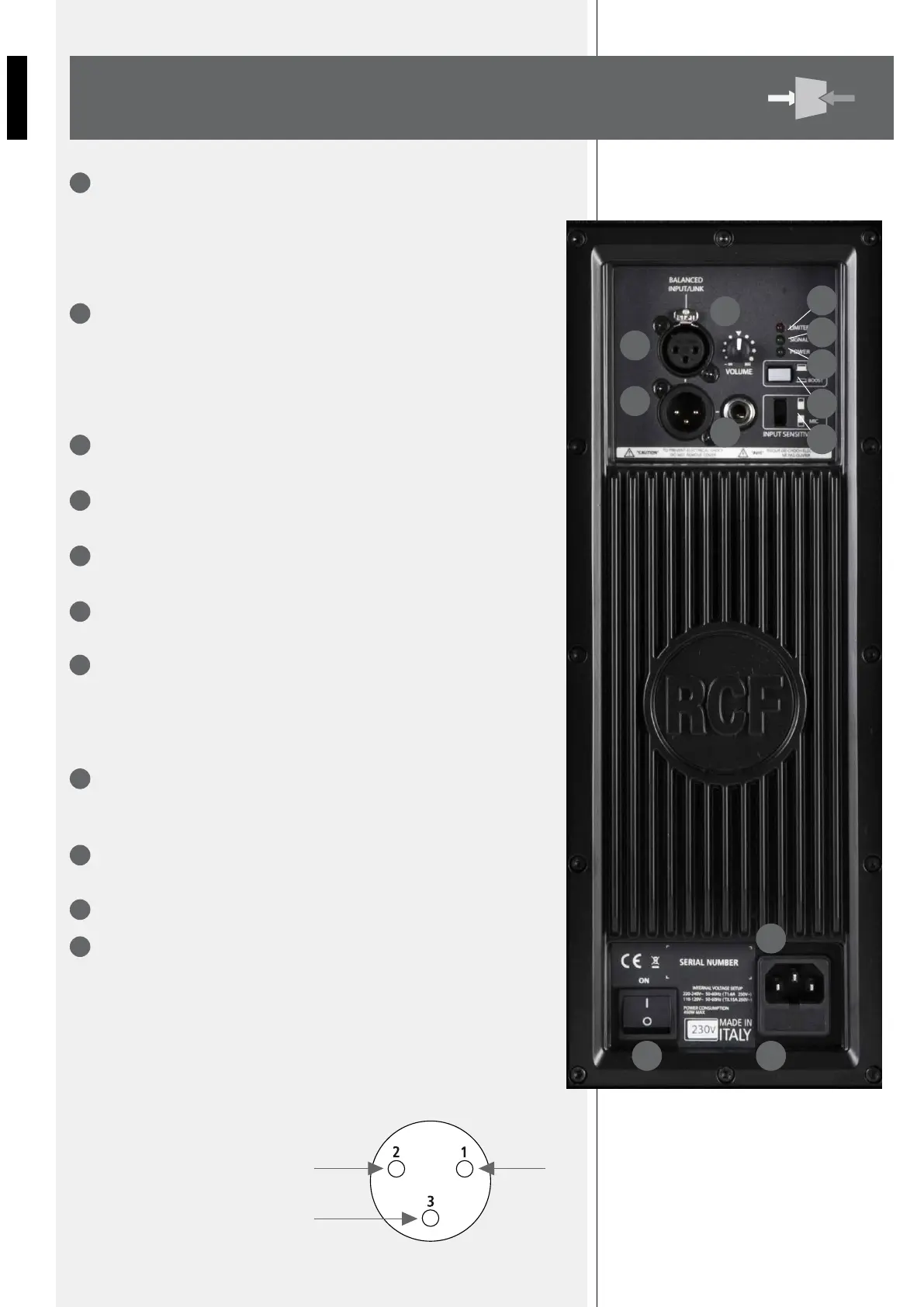 RÉGLAGE DE VOLUME. Détermine le volume de l’amplificateur. Ce réglage