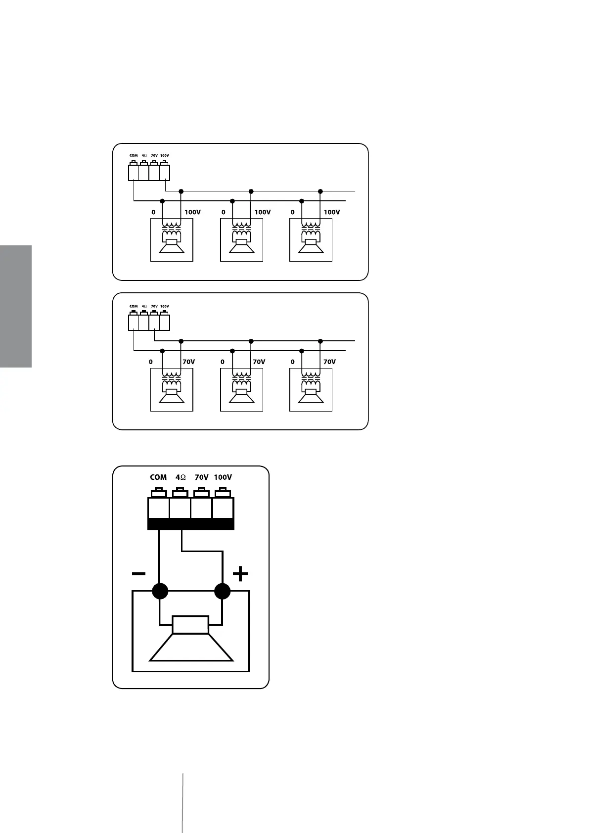 Utilisez une seule sortie– NE MÉLANGEZ PAS LES CONNEXIONS 100/ 70V et 4Ω!