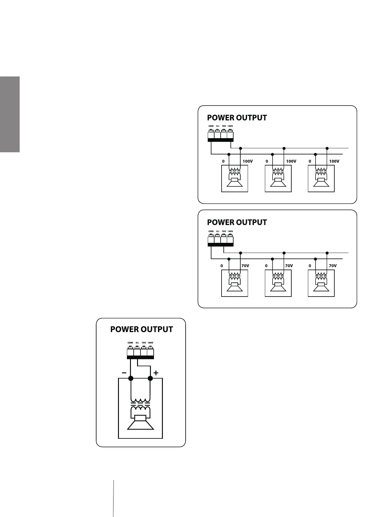 OUTPUTS AT 70/100 V CONSTANT VOLTAGE (HIGH IMPEDANCE)