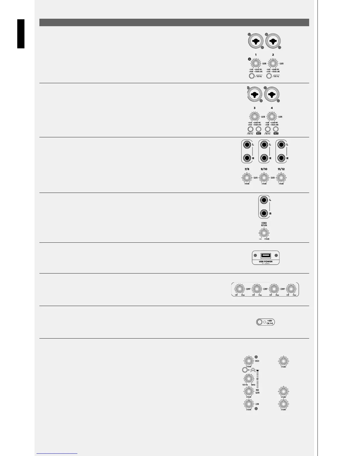 I canali di ingresso da 1 a 4 sono dotati di compressori dinamici a controllo singolo, potenti e intuitivi.