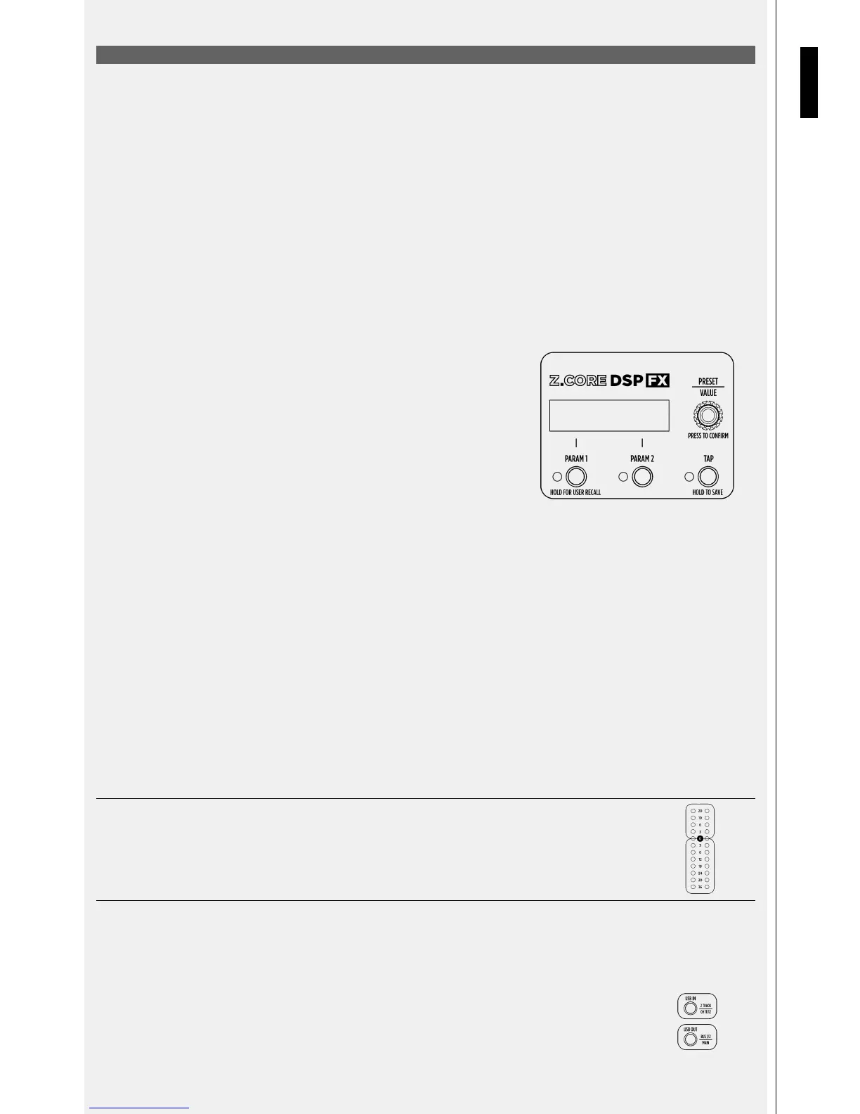 Z.CORE DSP FX è l‘unità di effetti presente all‘interno dei mixer RCF serie E, dispone di un DSP engine a 32 bit a virgola mobile di alta qualità,