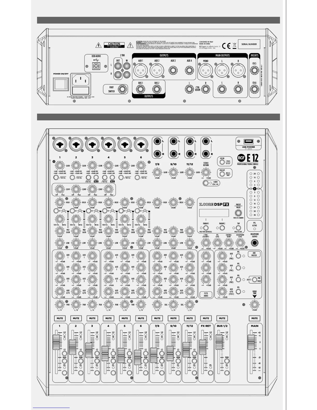 E12 TOP VIEW / VISTA FRONTALE