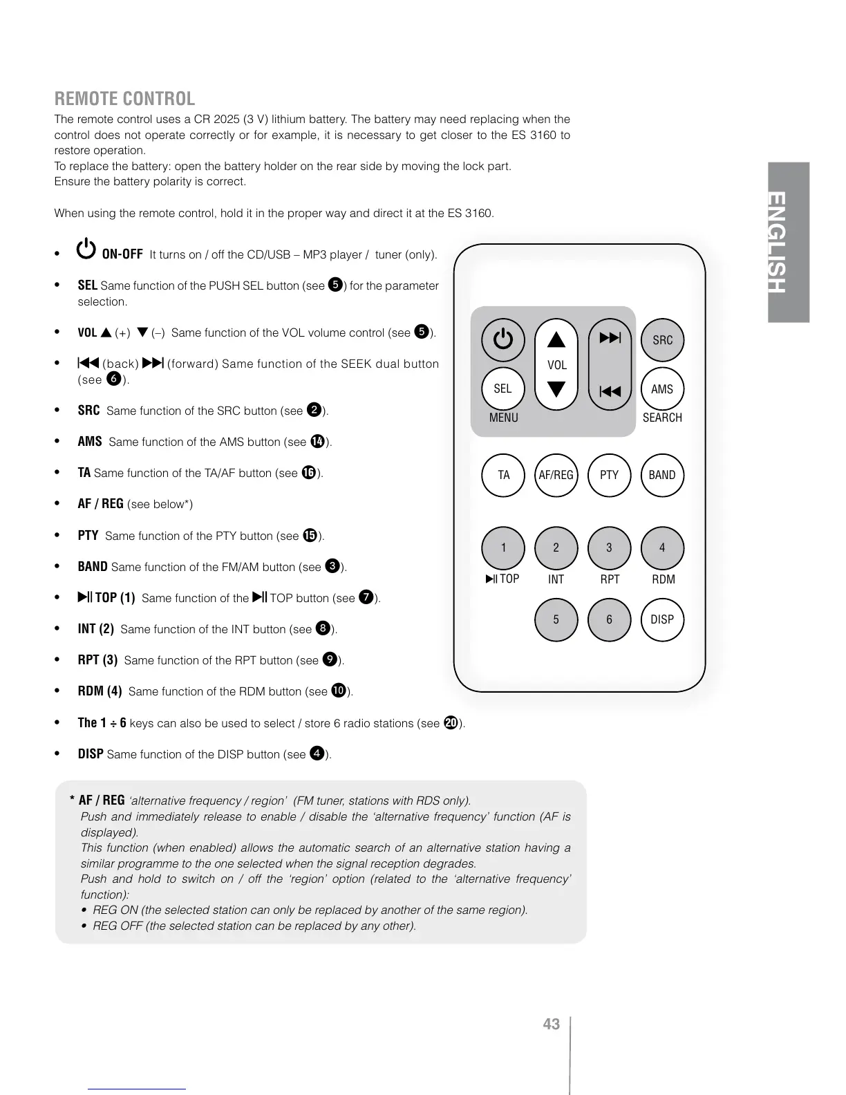 • REG ON (the selected station can only be replaced by another of the same region).