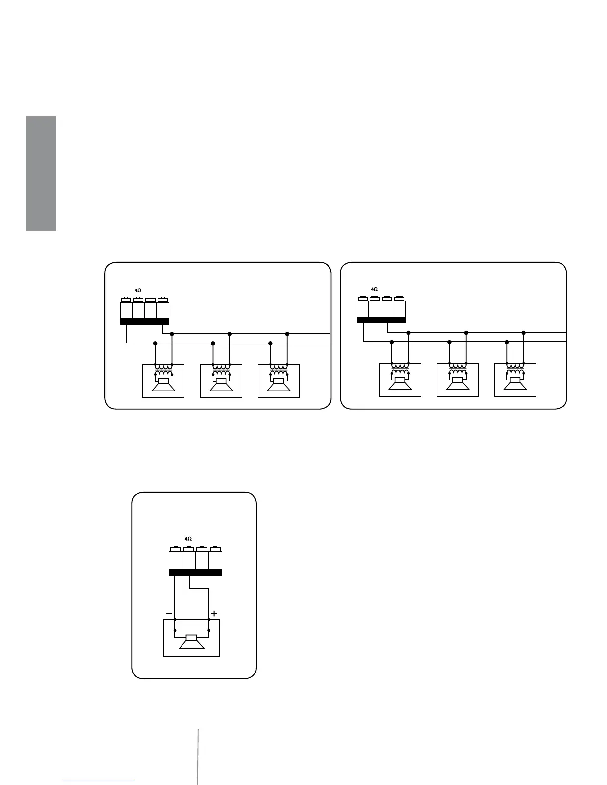 constant voltage output (70V or 100V), as this overloads the amplifier.