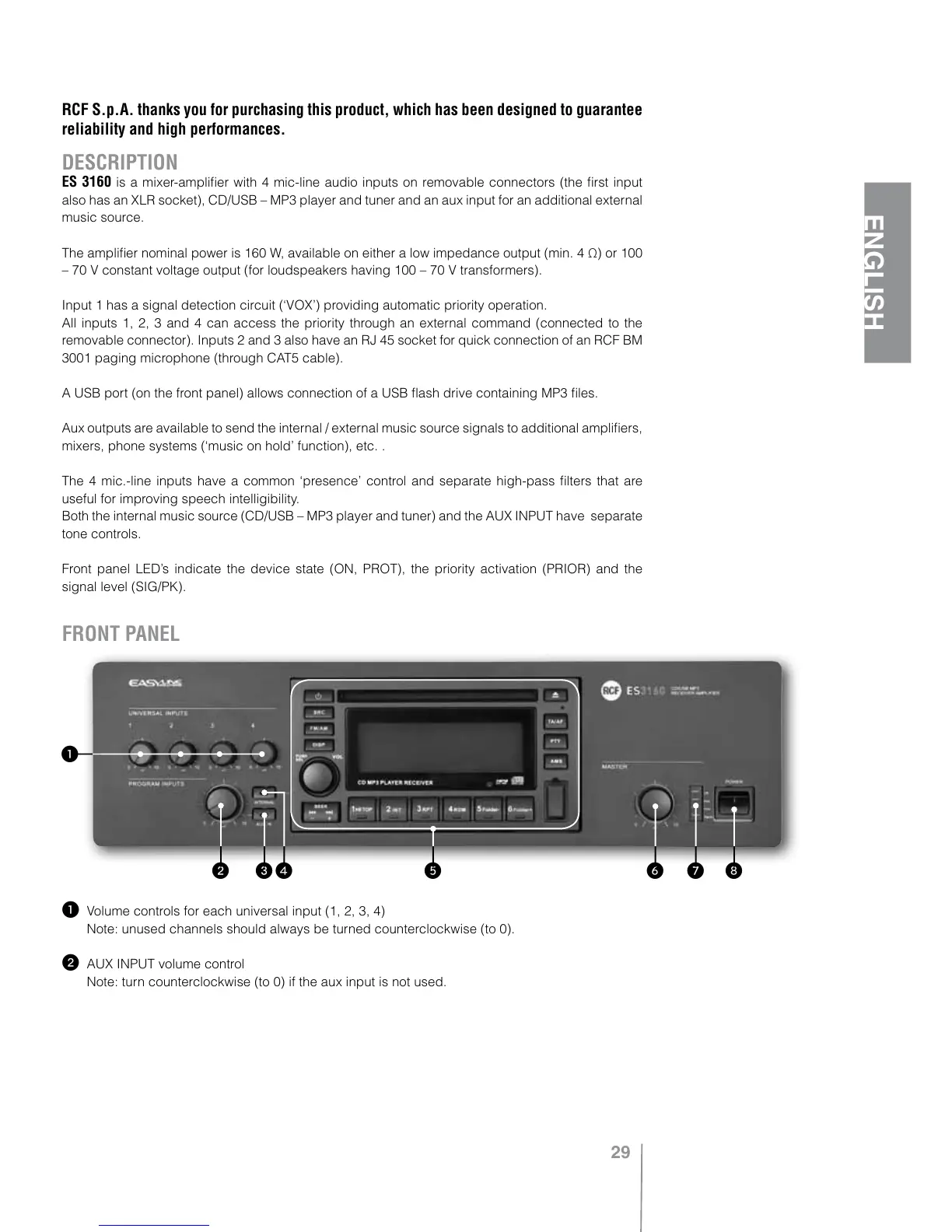RCF S.p.A. thanks you for purchasing this product, which has been designed to guarantee