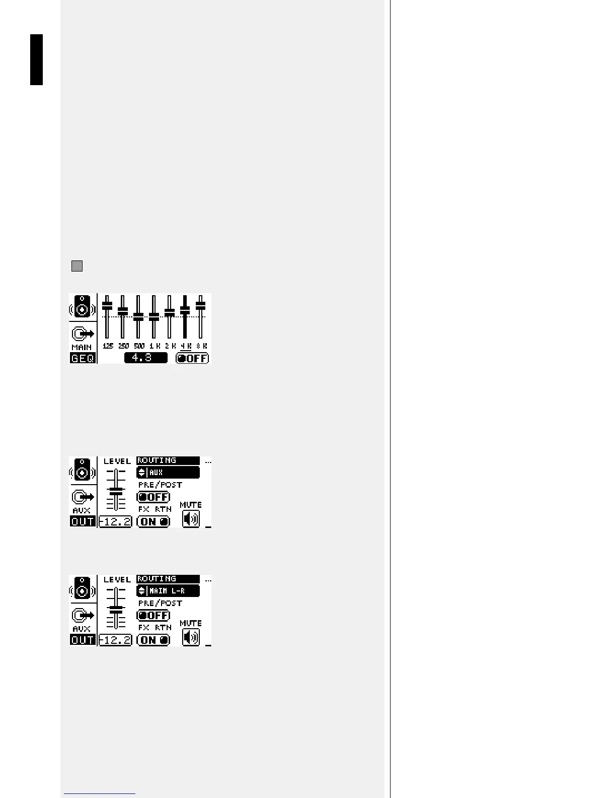 control. Set this control to OFF for AUX PRE and ON for AUX POST. FX RTN ON/OFF box