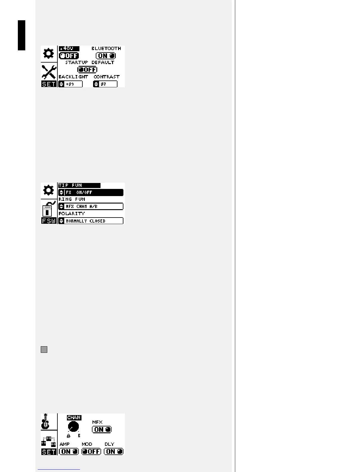 La pagina SET consente di selezionare tra i canali FX A o B tramite l’icona della manopola