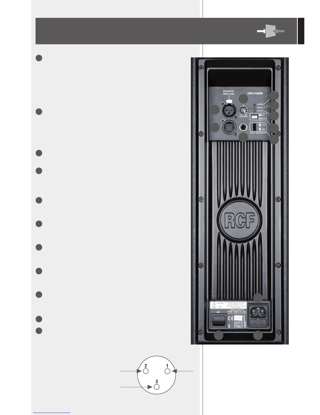 MÄNNLICHER XLR-SIGNALAUSGANG. An dieser XLR-Buchse liegt das
