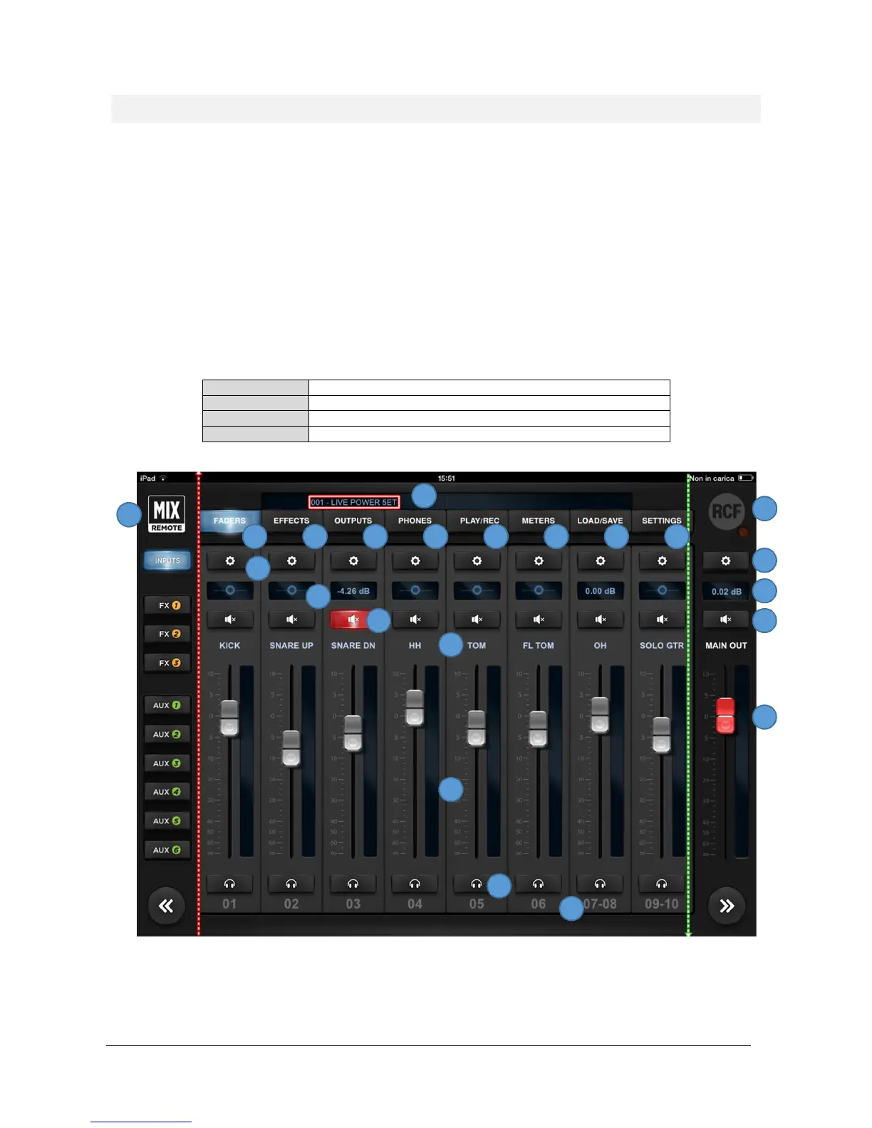 (1). It you tap on the MIX REMOTE logo, you will be directed to the main FADERS > INPUTS view; this is a