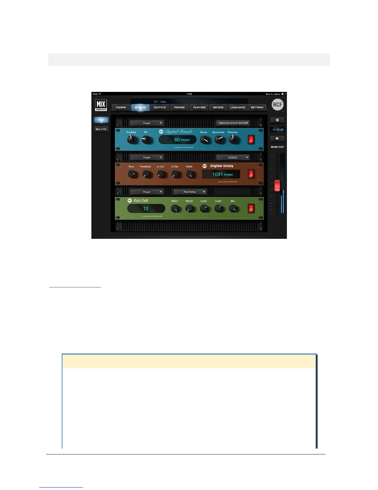 The EFFECTS tab contains two pages: SEND and MULTIFX.