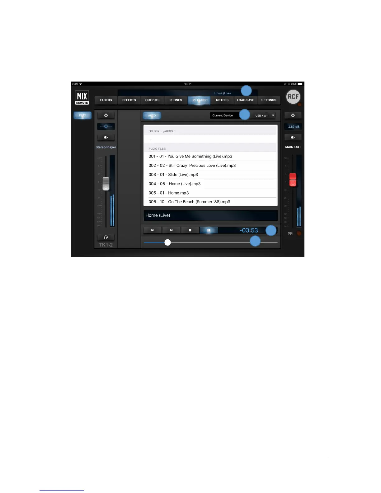 On the upper bar, on the right side, you can view (3) the file currently selected on the player.