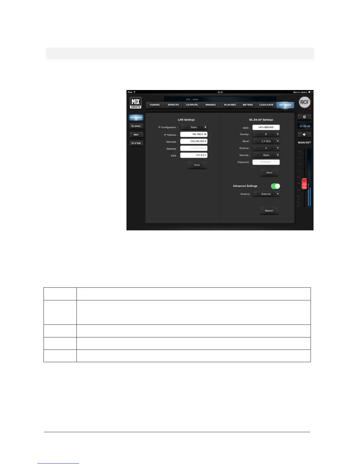 After you perform all changes to either LAN of WLAN parameters, you must press SEND to modify these settings into