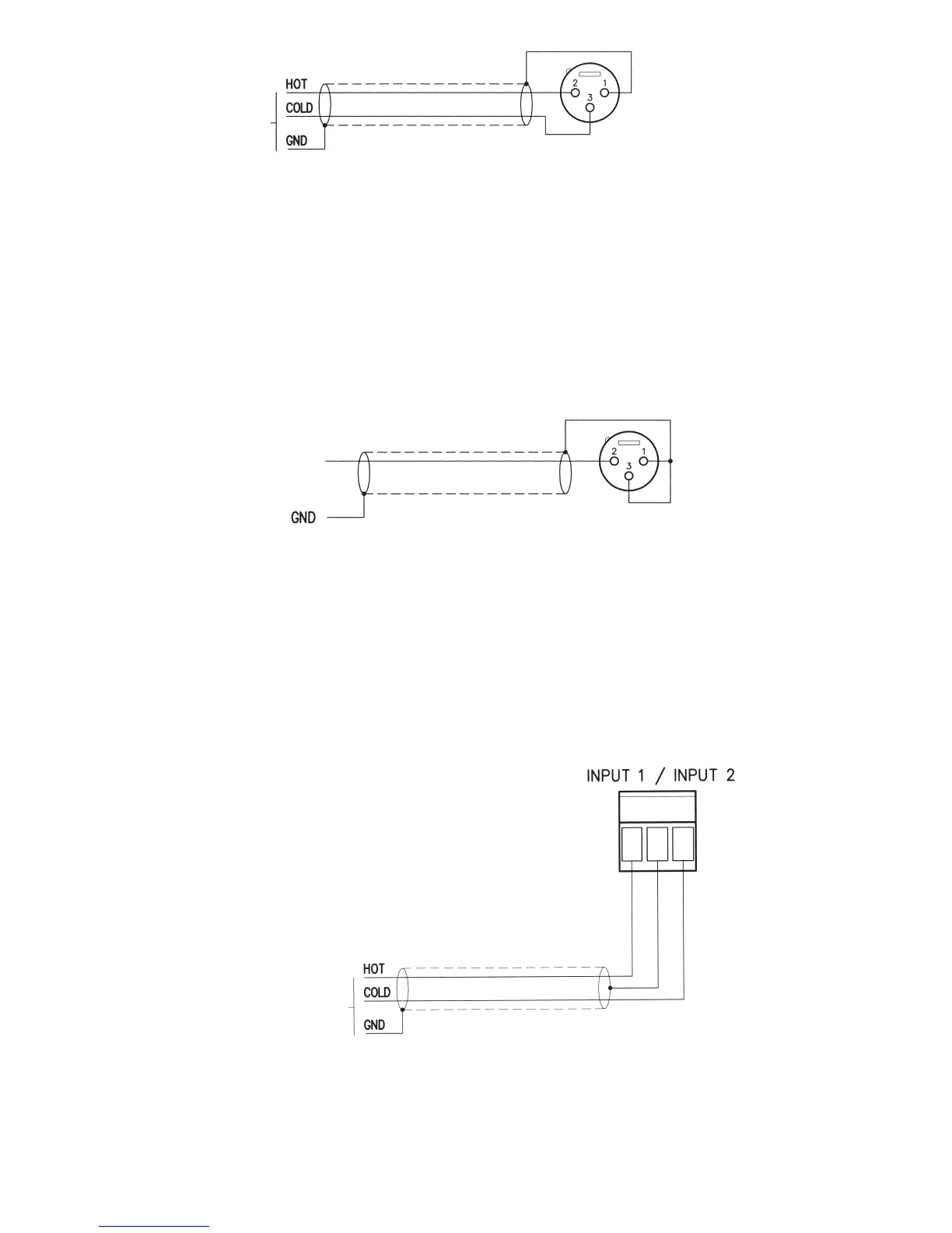 INPUT2 terminal strip (balanced signal) • Connexion du bornier INPUT1 o INPUT2 (signal symétrique)