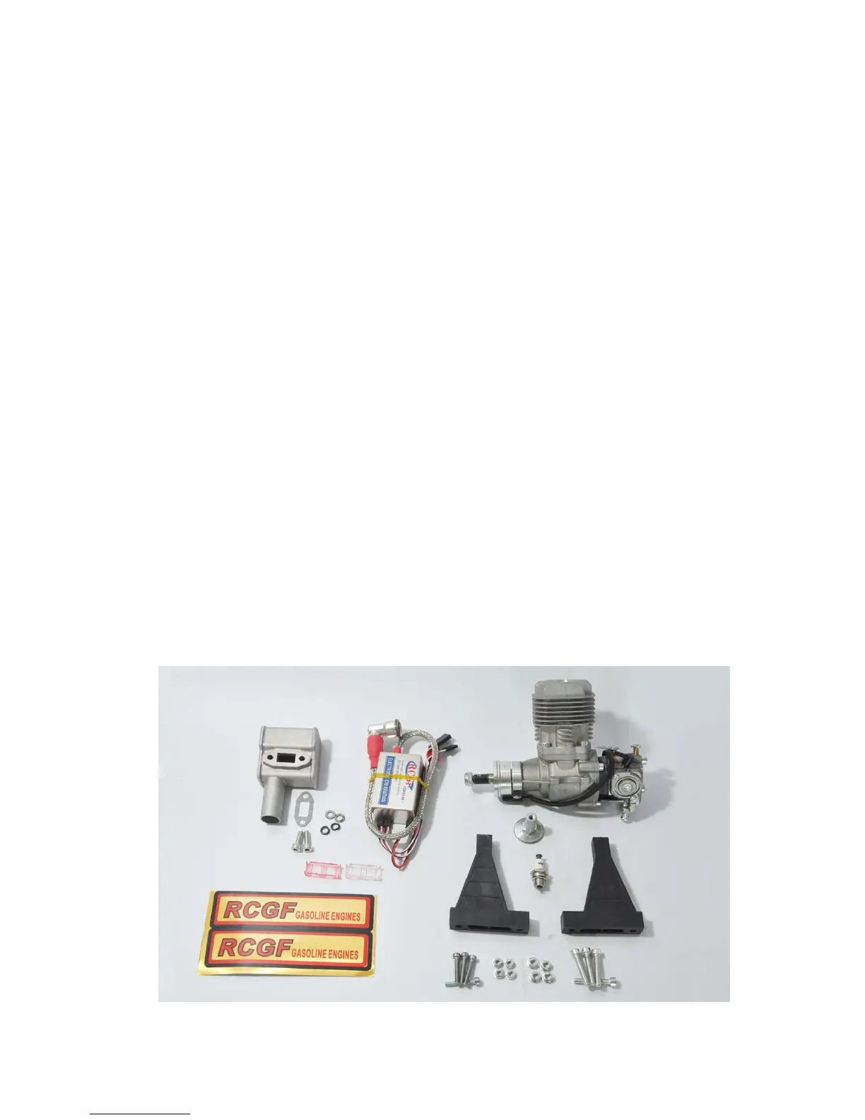 RCGF engine package Includes: electronic CDI ignition, muffler, spark plug, gaskets, bolts,