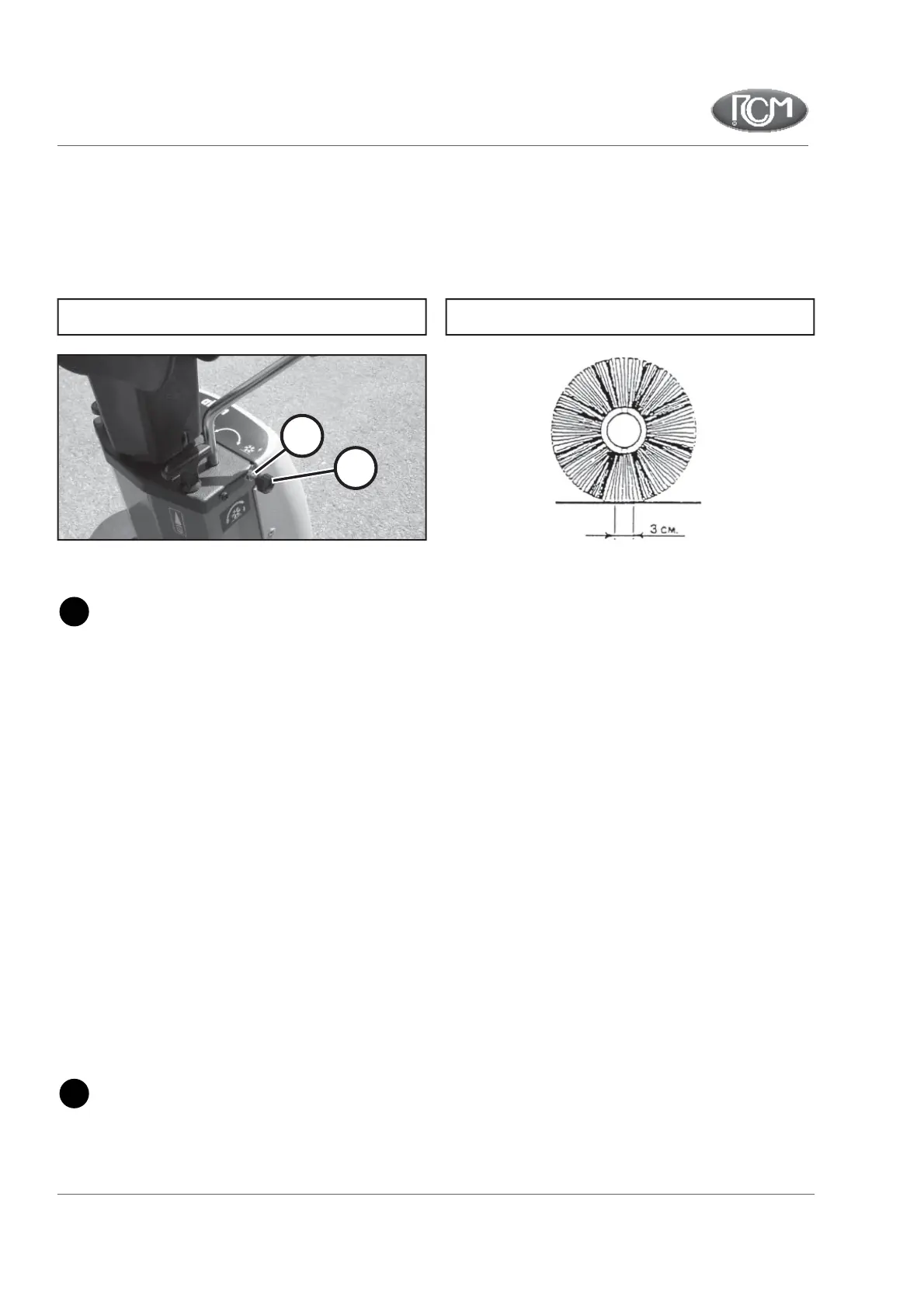 Per un buon funzionamento, la spazzola deve sfiorare il terreno, lasciando una traccia a terra di 3 cm di larghezza (fig. 13).