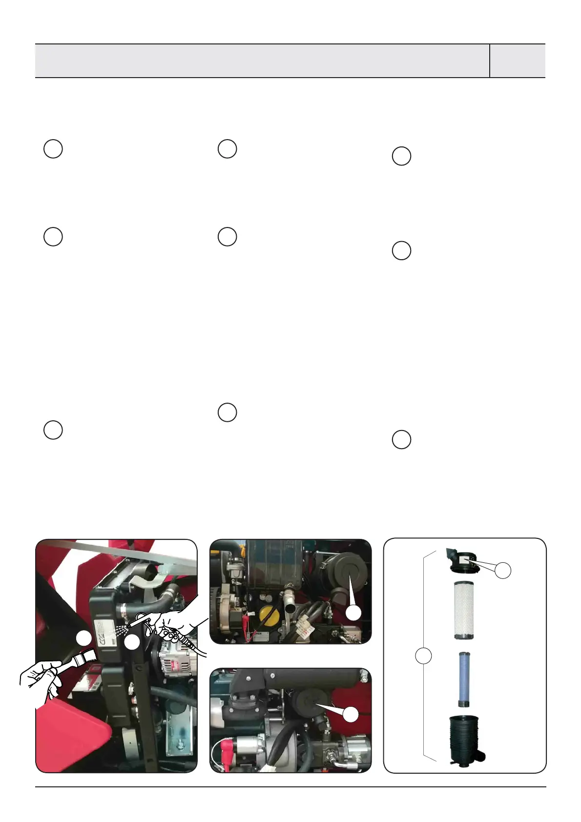 Ogni 8 - 10 ore di lavoro smontare i ltri aria 4 motore