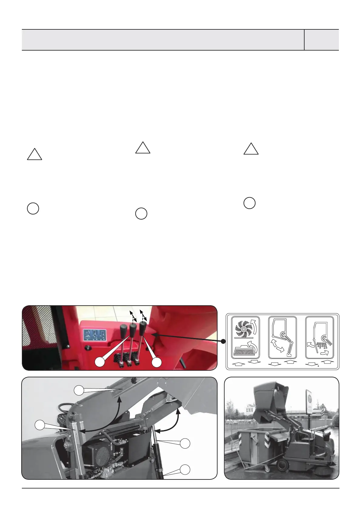 • Plaats de veegmachine zo dat de afvalbak bo-