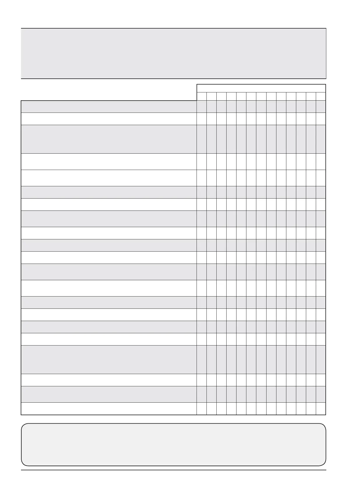 HANDELINGEN VOOR ONDERHOUD EN CONTROLE TABEL